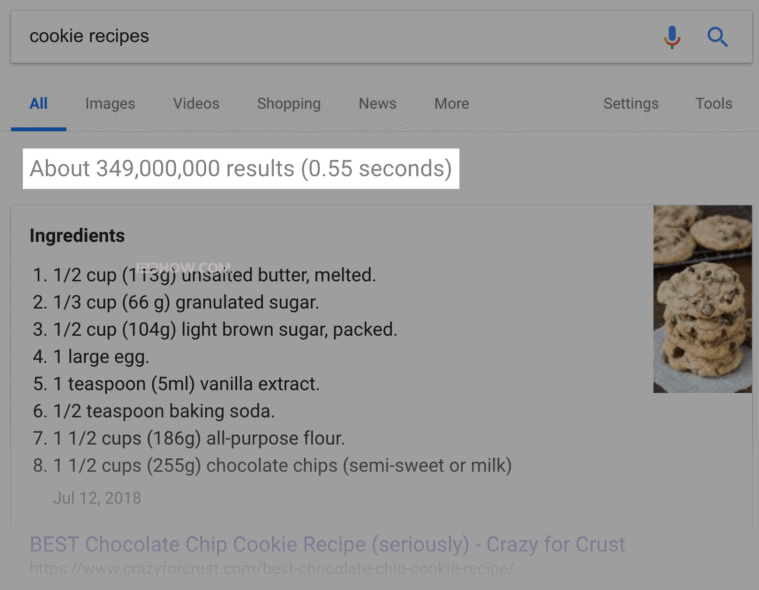 例如,关键词“cookie recipes”(曲奇食谱)在谷歌上有3.49亿个结果: