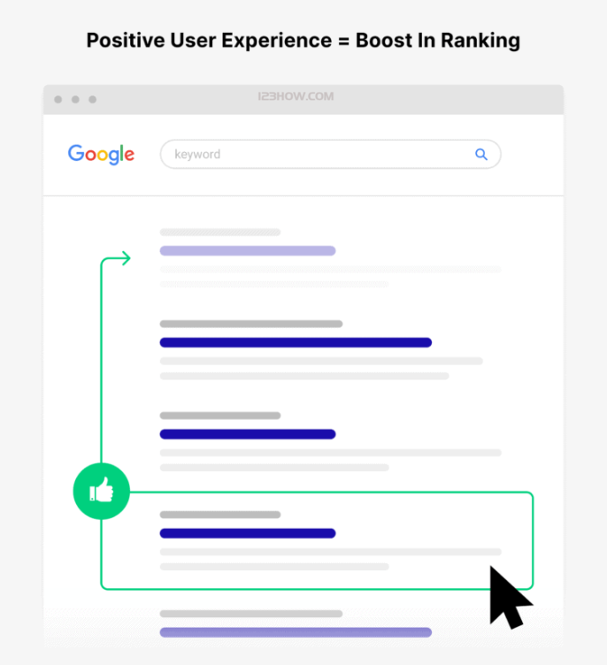 换句话说:用户如何与搜索结果互动。如果谷歌发现人们非常喜欢某个搜索结果,那么它的排名就会得到显著提升: