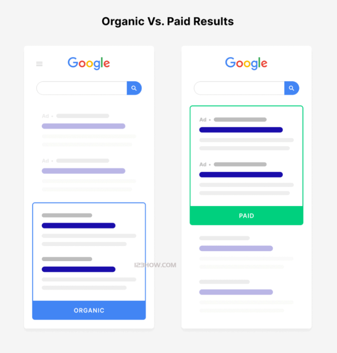 搜索引擎结果页面分为两个不同的部分:自然结果和付费结果。