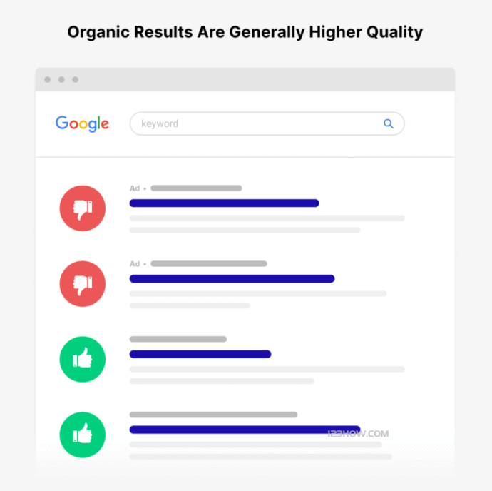 换句话说,要想在有机搜索结果中排名靠前,根本无法向 Google 或其他搜索引擎付费。