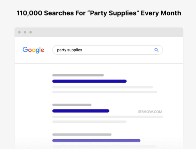 假设你经营一家派对用品公司。根据Google关键字规划工具,每个月有110,000人搜索“派对用品”。