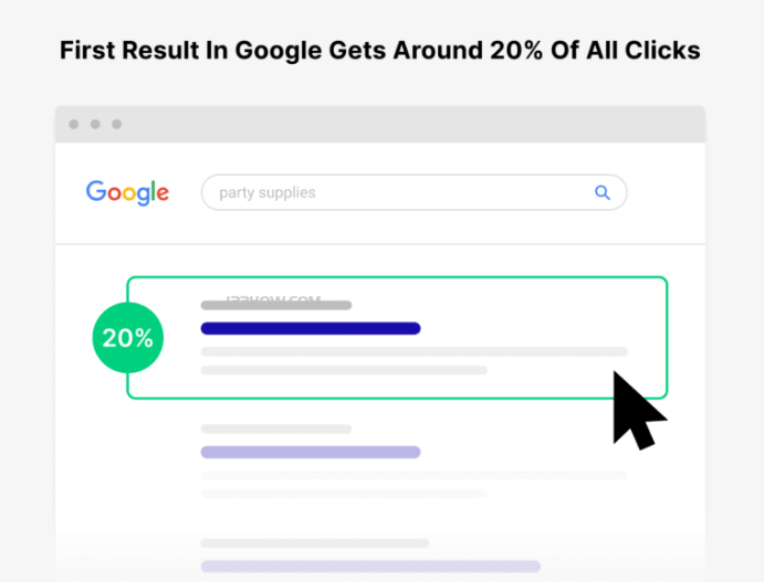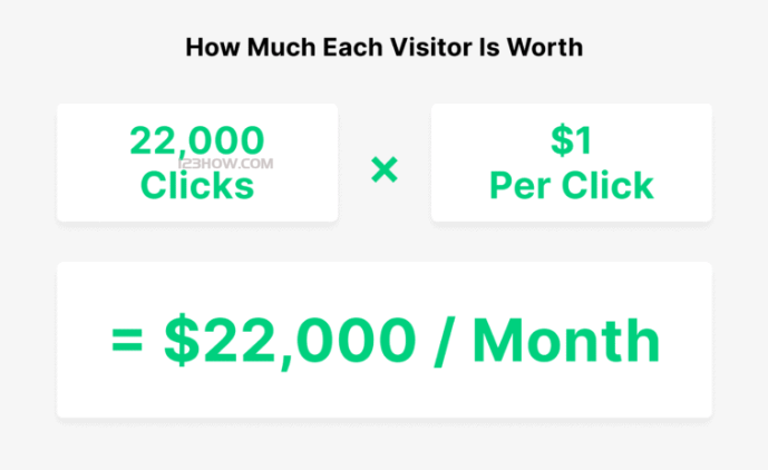 考虑到谷歌第一条结果的点击率约占全部点击率的 20%,如果您的网站显示在顶部,每月就有 22,000 名访客访问您的网站。