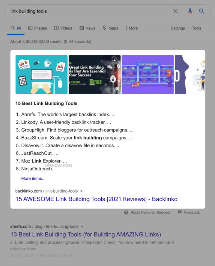 此外,根据 Sistrix 的说法,YouTube 视频现在也正在成为 Google 搜索结果的重要组成部分。