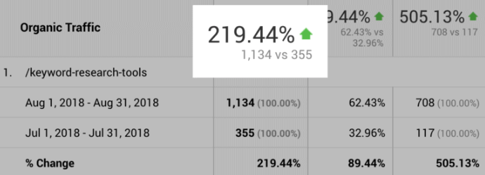 不久前,我将其中一个页面的自然流量提高了 219%。