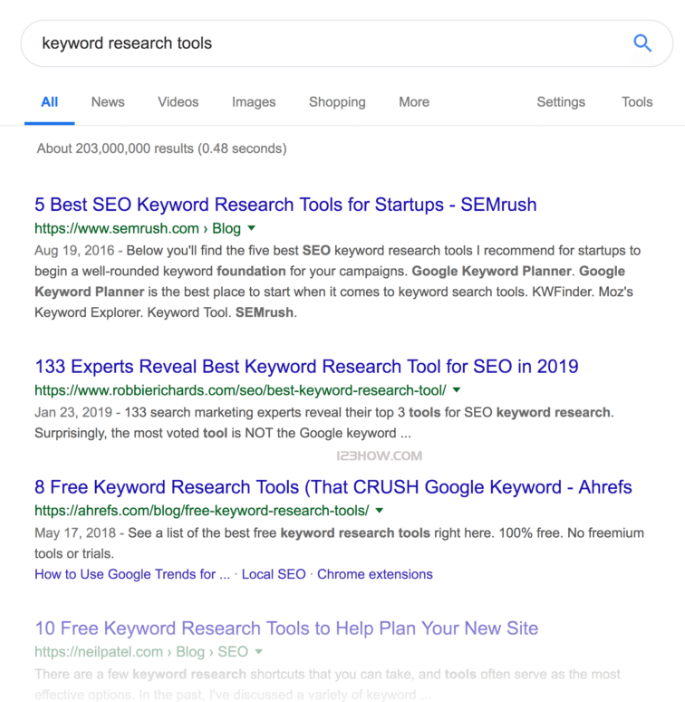 但假设您搜索了“关键字工具”。然后你就到达了这个页面: