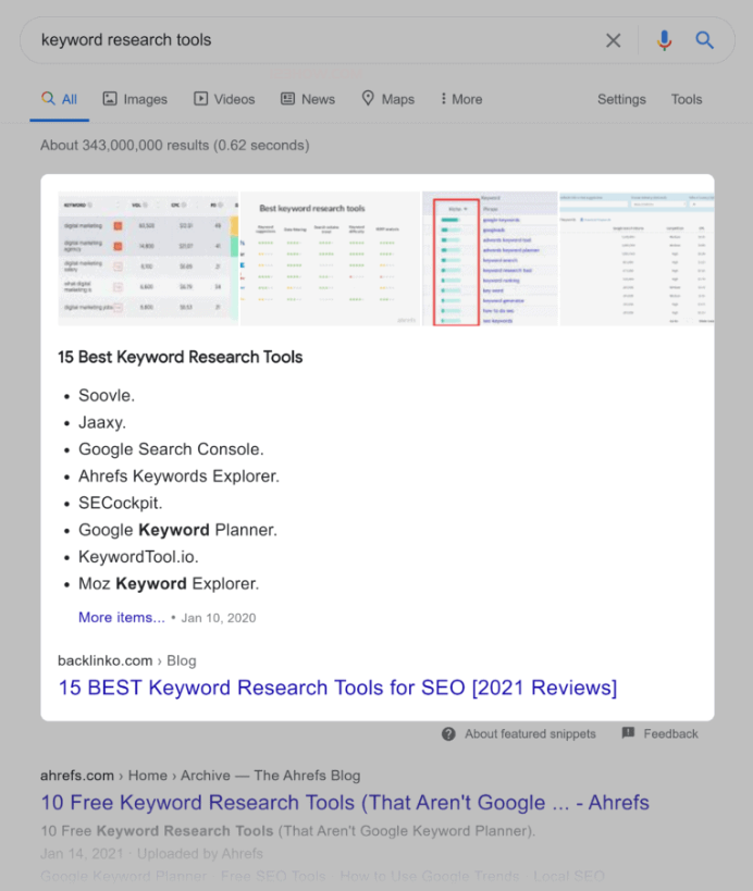 我意识到我的页面没有列出足够的工具。大多数搜索“关键词研究工具”的人都想要一个包含 10 多个工具的列表。但我的页面只概述了 X 工具。