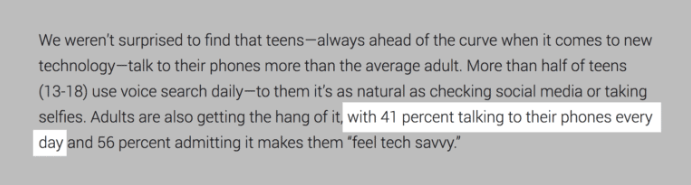 谷歌甚至报告称,近一半的成年人每天都使用语音搜索。