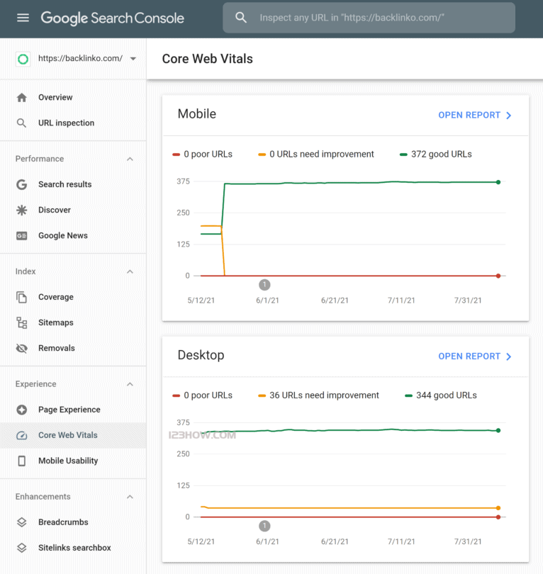 您可以在 Search Console 帐户中查看网站的 Core Web Vitals 报告: