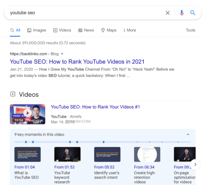 当然,YouTube 视频多年来一直出现在 Google 的搜索结果中。但在过去 18 个月左右的时间里,他们占据了越来越多的 SERP 空间……显着高于首屏: